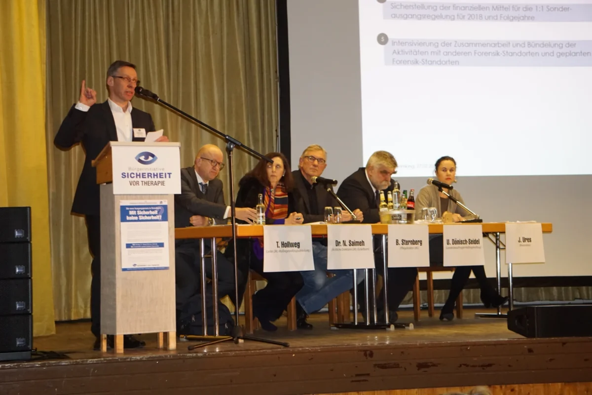 Parallel entwickelte sich – auch durch Verbesserungen bei äußerer und innerer Sicherheit – eine stabilere Zusammenarbeit mit Klinik und LWL. Dennoch brachte das Urteil des OLG Hamm 2017/2018 eine neue Situation, die in der Region erneut große Verunsicherung auslöste. Die BI nahm ihre Arbeit mit hoher Intensität wieder auf, organisierte Austauschformate und unterstützte Prozesse, die schließlich auch in gesetzliche Anpassungen mündeten.