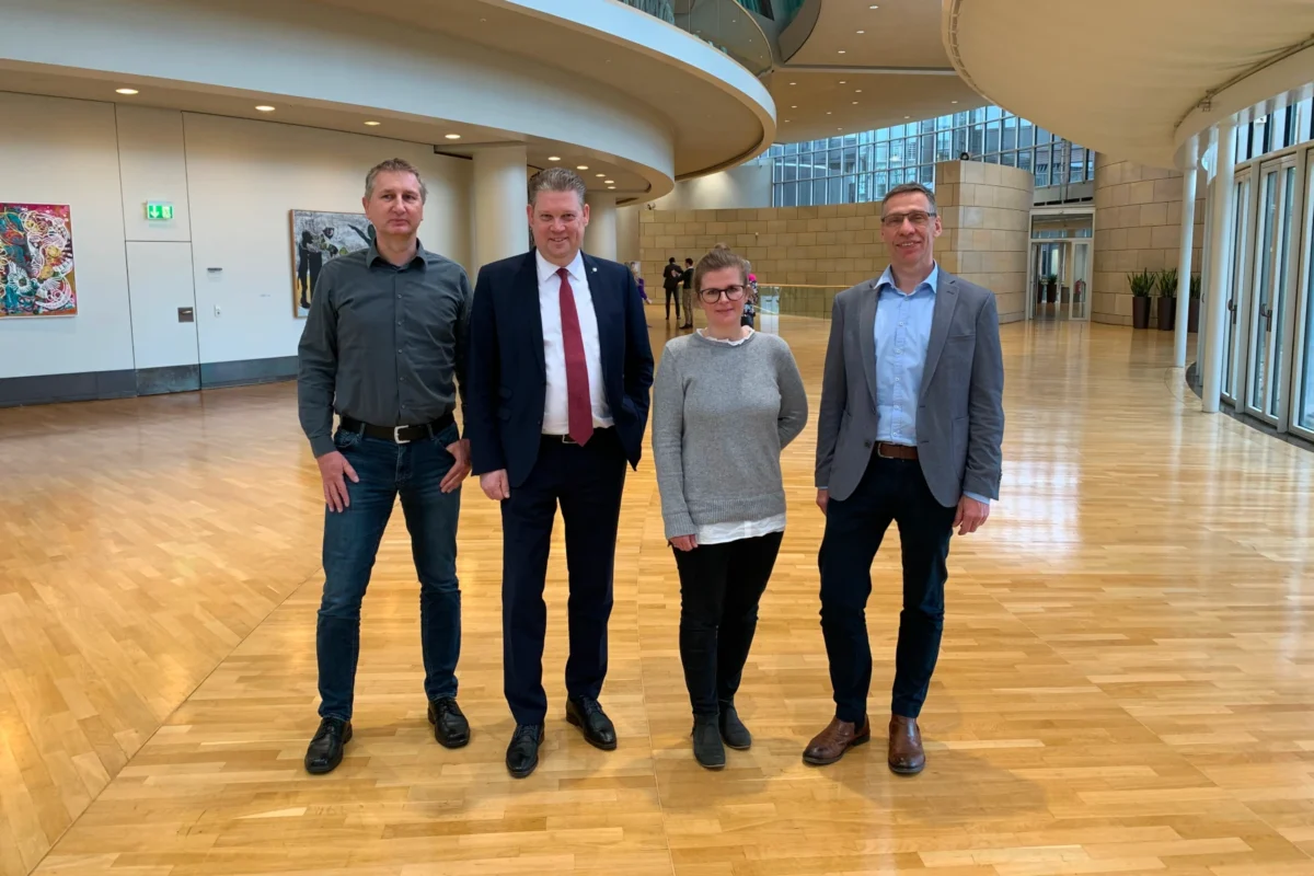 12.03.2020 Besuch der Bi im Landtag. Rainer Ziebeil, MdL Jörg Blöming, Nine Meinert, Franz Knust