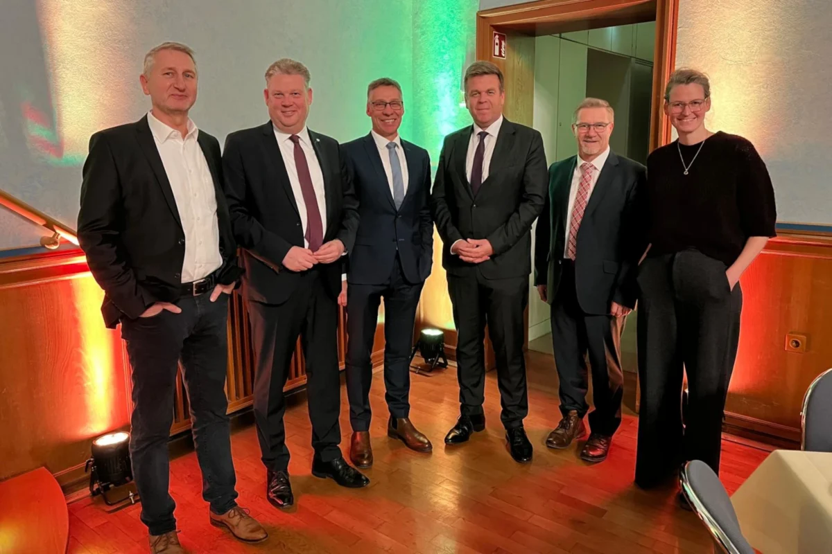 Rainer Ziebeil, MdL Jörg Blöming, Franz Knust, Staatssekretär Matthias Heidmeier, Hubert Niehaus, Katrin Hüsten